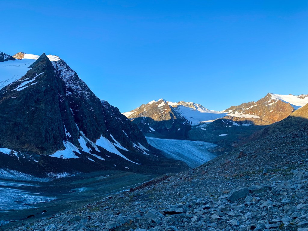 Tag 1 von Spielmannsau nach HolzgauTag 2 von Holzgau zur Memminger HütteTag 3 von der Memminger Hütte über Zams zur Venet Gipfelhütte Tag 4 von der Venet Gipfelhütte zur Braunschweiger HütteTag 5 von der Braunschweiger Hütte nach VentTag 6 von Vent zur Similaunhütte Tag 7 von der Similaunhütte über Vernagter Stausee nach Meran